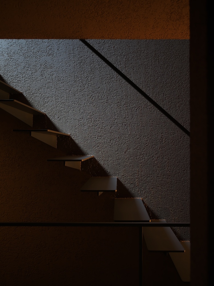 階段は薄く浮遊感をだし、シャープな空間を演出します。